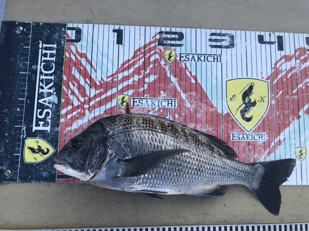 フグ屋形、大西さんの釣果、チヌ35センチ。