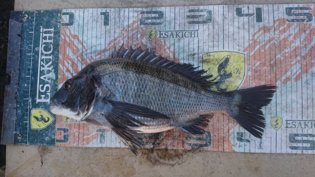 フグ屋形、大西さんの釣果、チヌ35センチ。