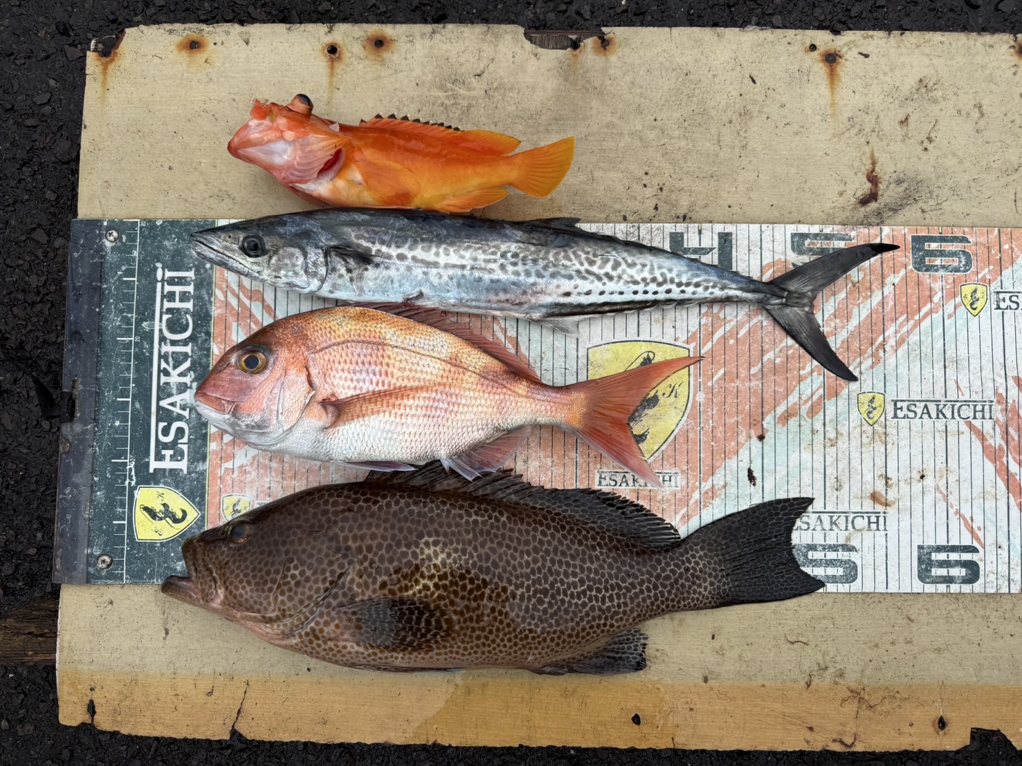 今日の釣果 2025-02-16 船釣りで、岩田さん達3名が釣りました、オオモンハタ、真鯛など。 釣れた魚種 アカハタ オオモンハタ サワラ・サゴシ タイ 根魚 タグ 船釣り 前の釣果 今日の釣果 次の釣果 今日の釣果 釣果一覧に戻る