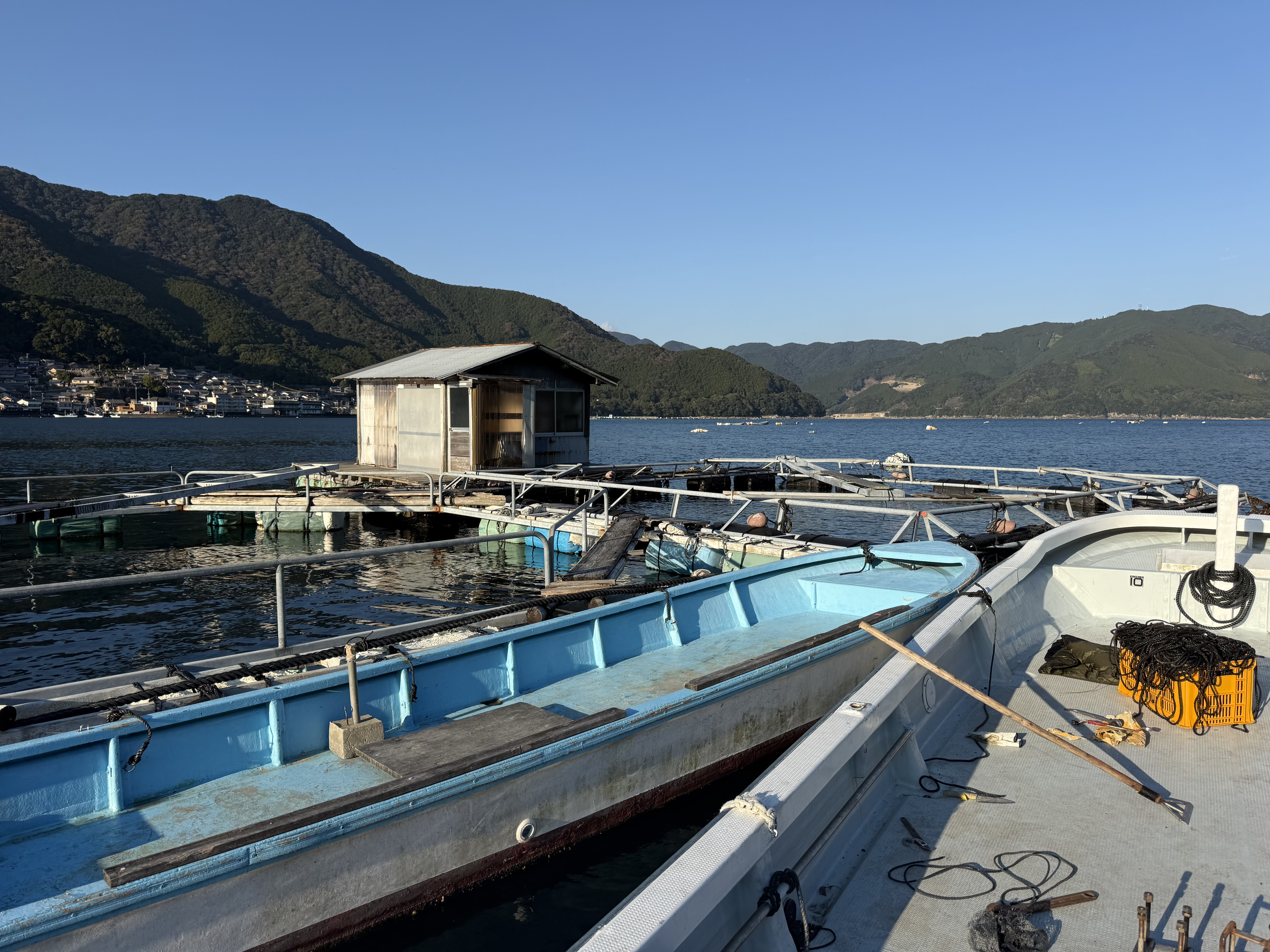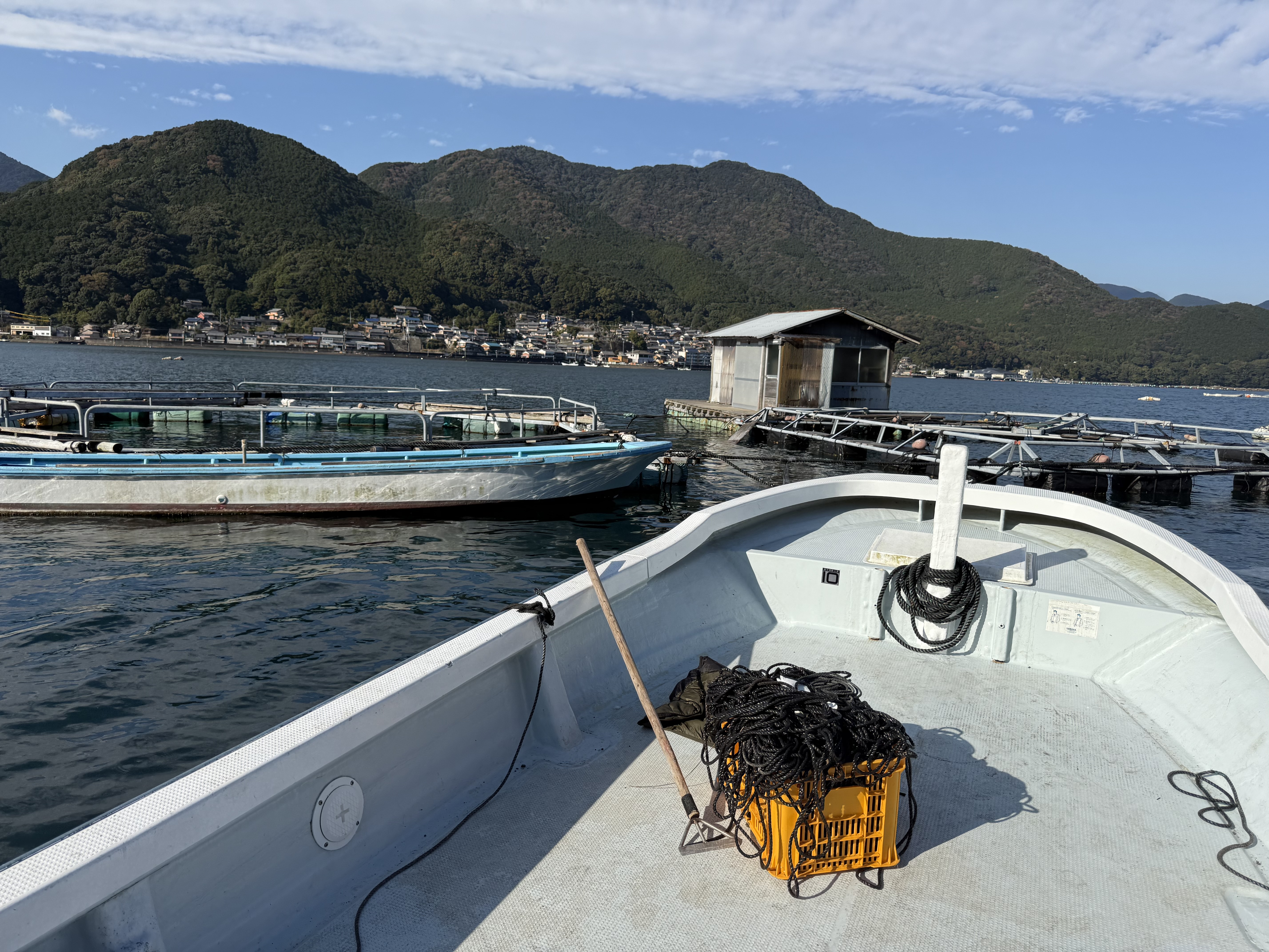 養殖筏が増えるので、現在7台繋いでいるロープにもう一台追加します!